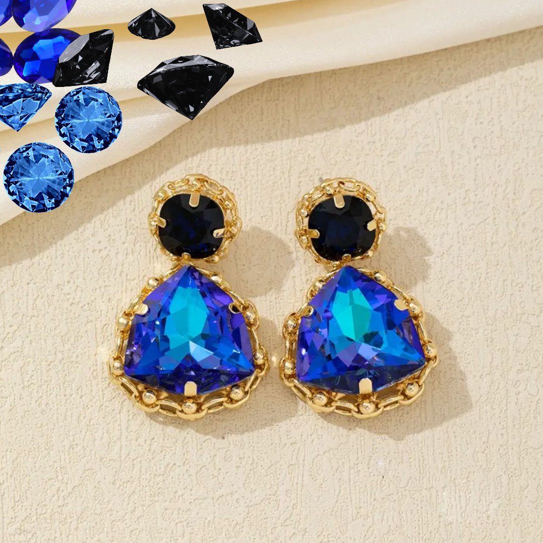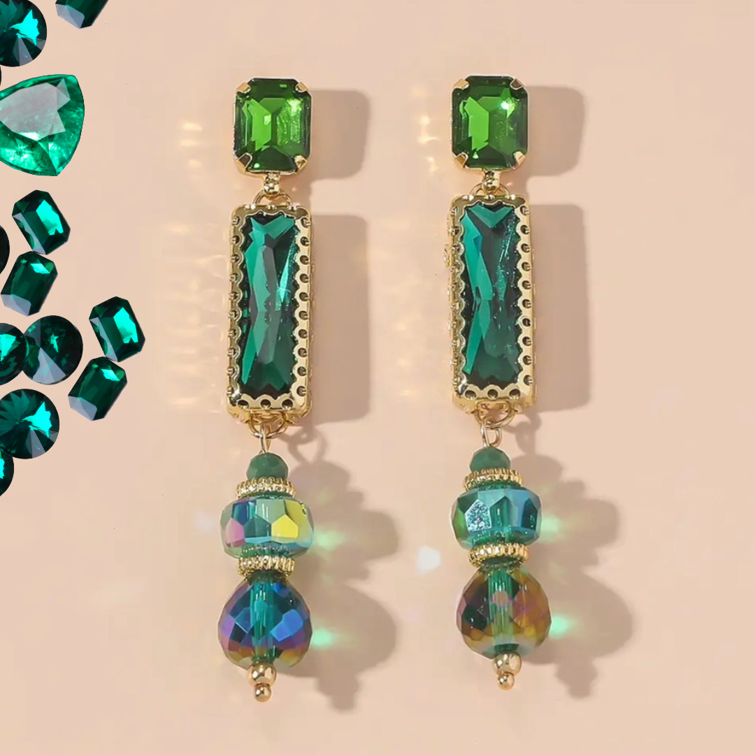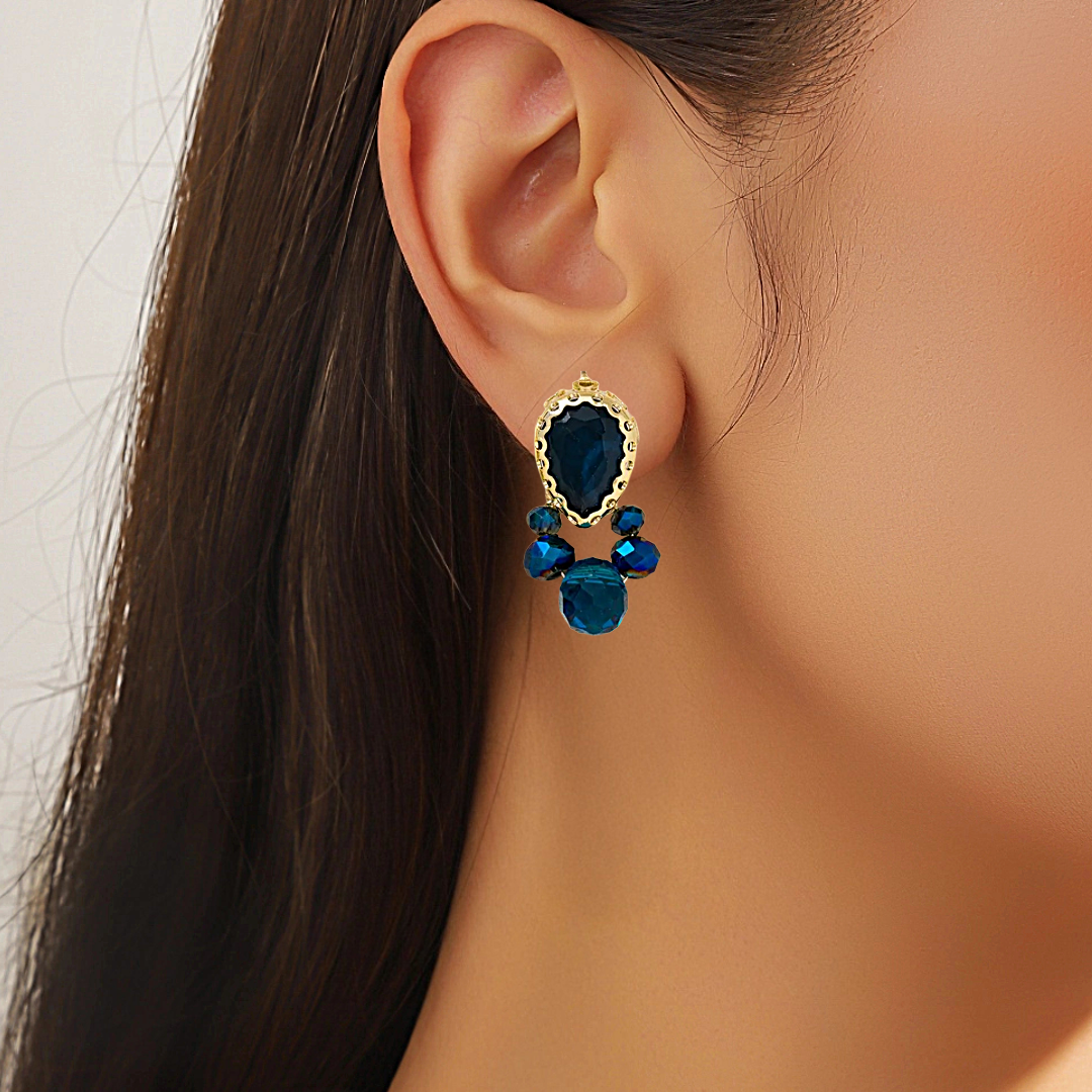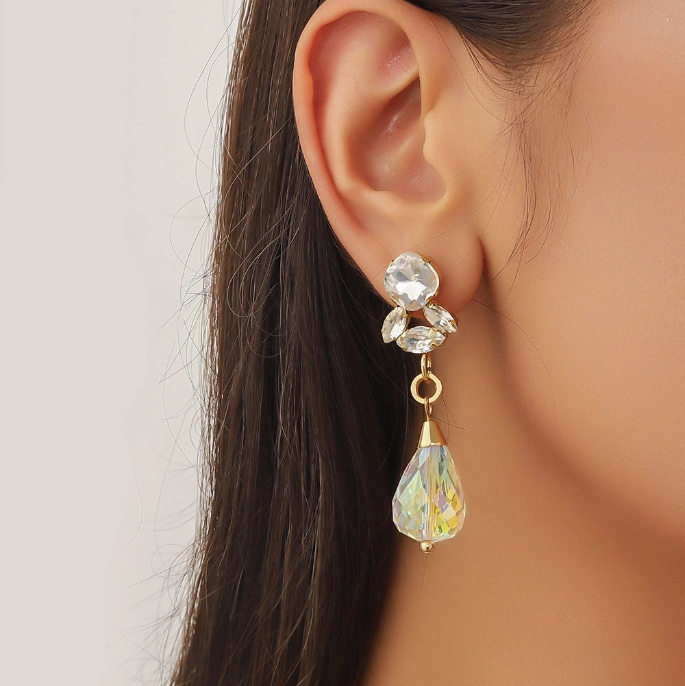 Prix régulier €20,00Boucles d'oreilles fantaisie à clous en métal doré avec strass et perles à facettes.