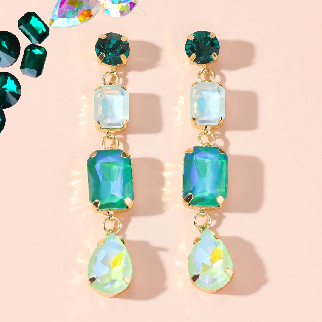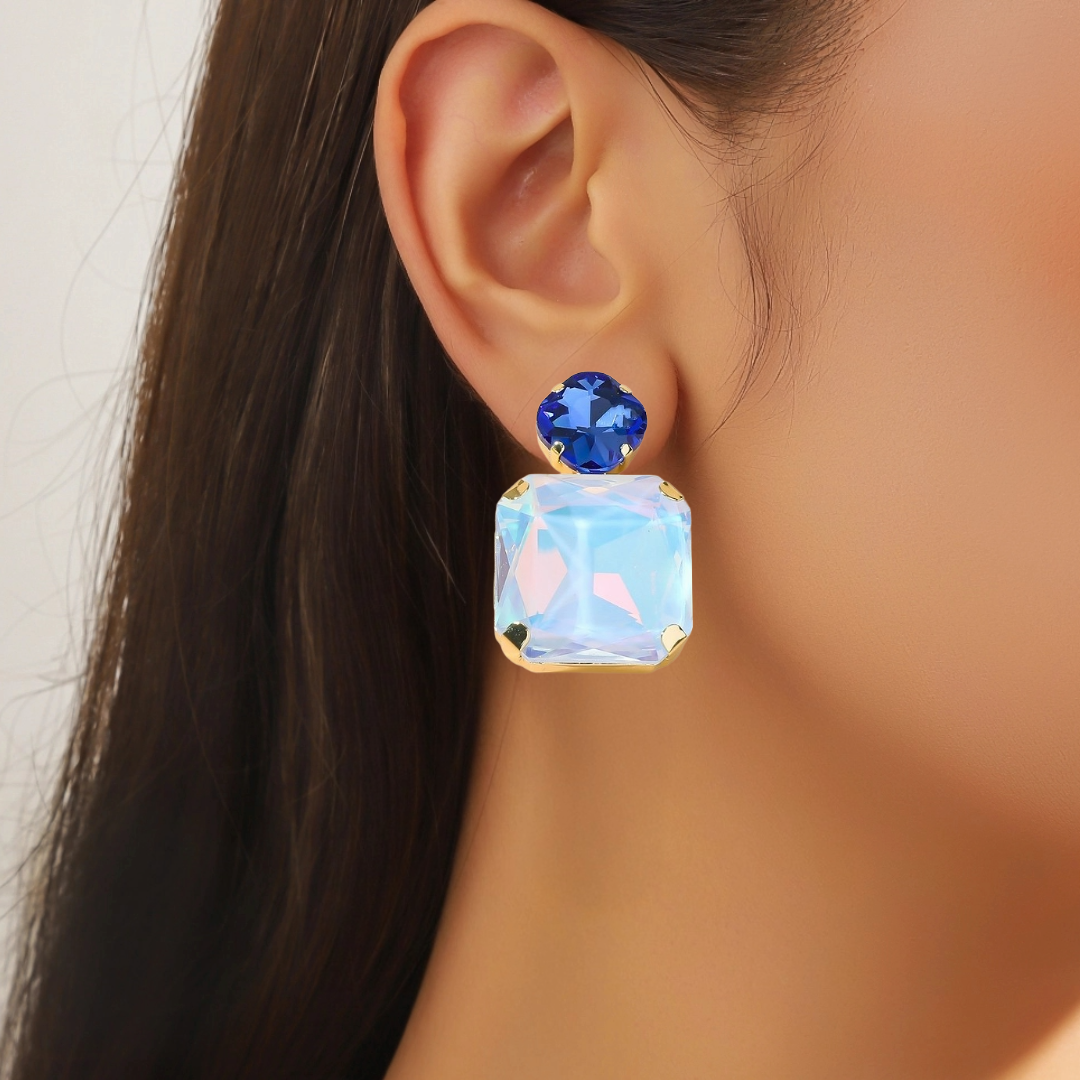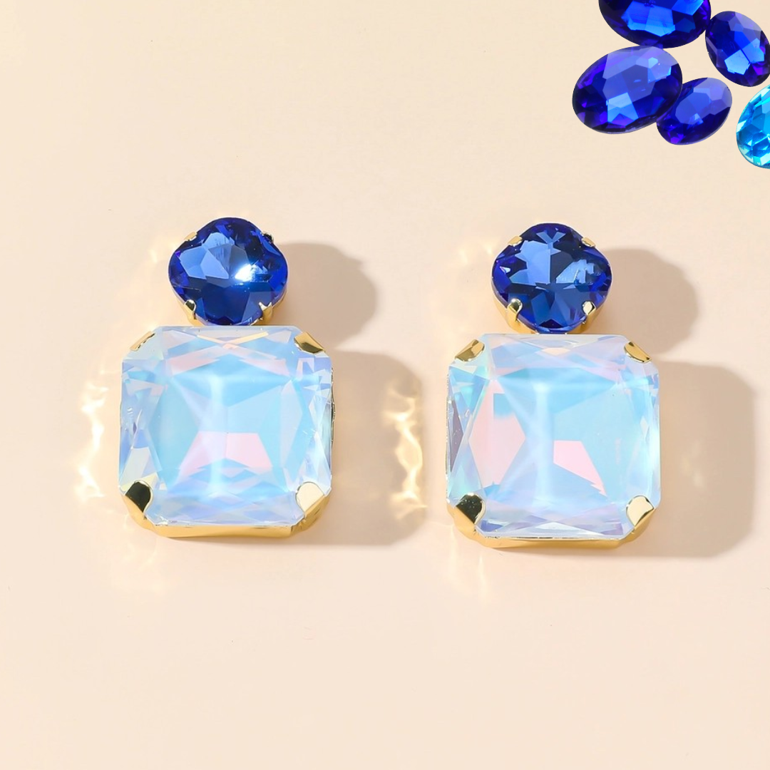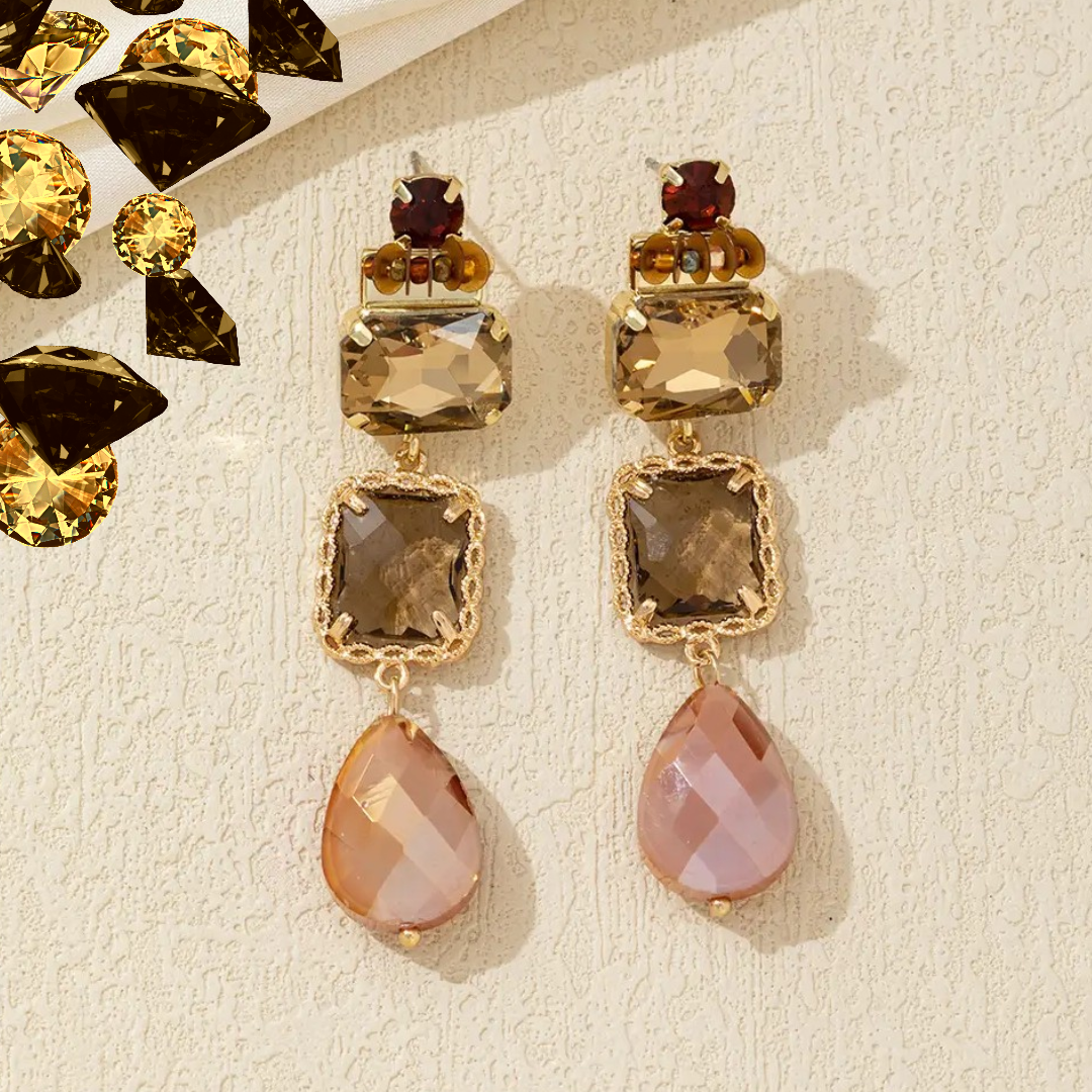 Prix régulier €20,00Boucles d'oreilles fantaisie à clous en métal doré avec strass et perles à facettes.