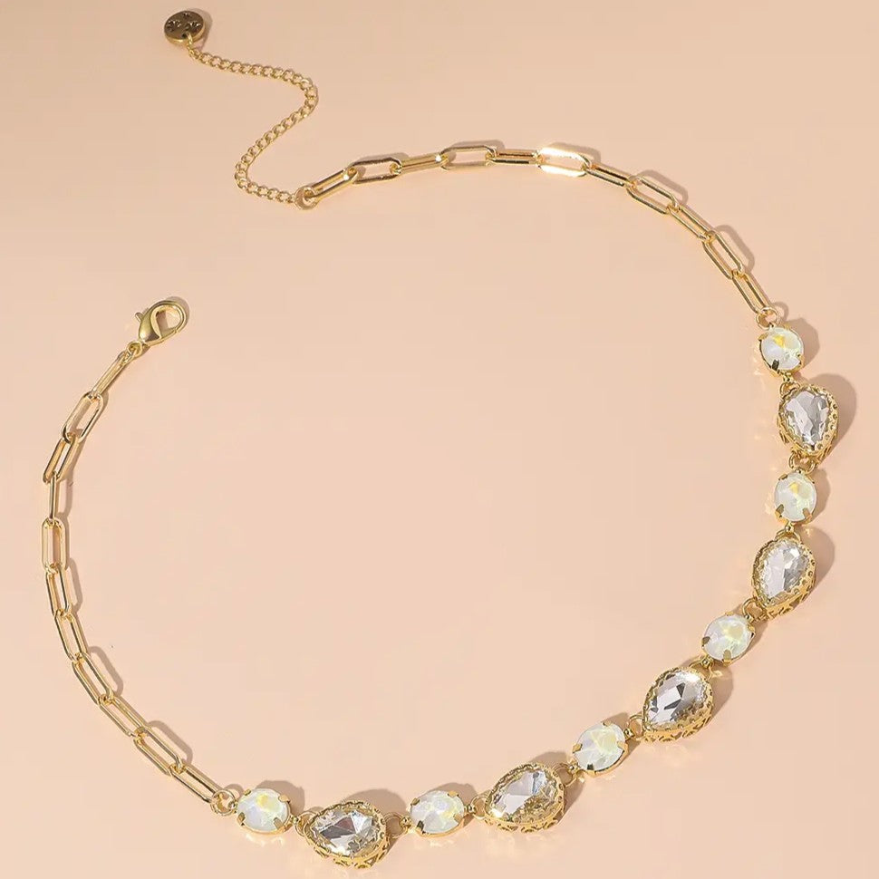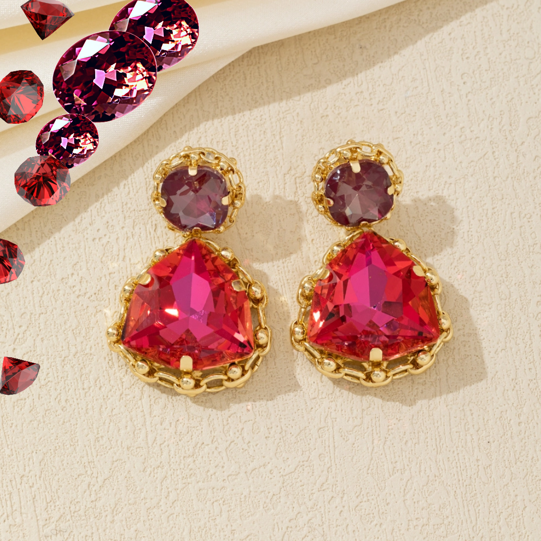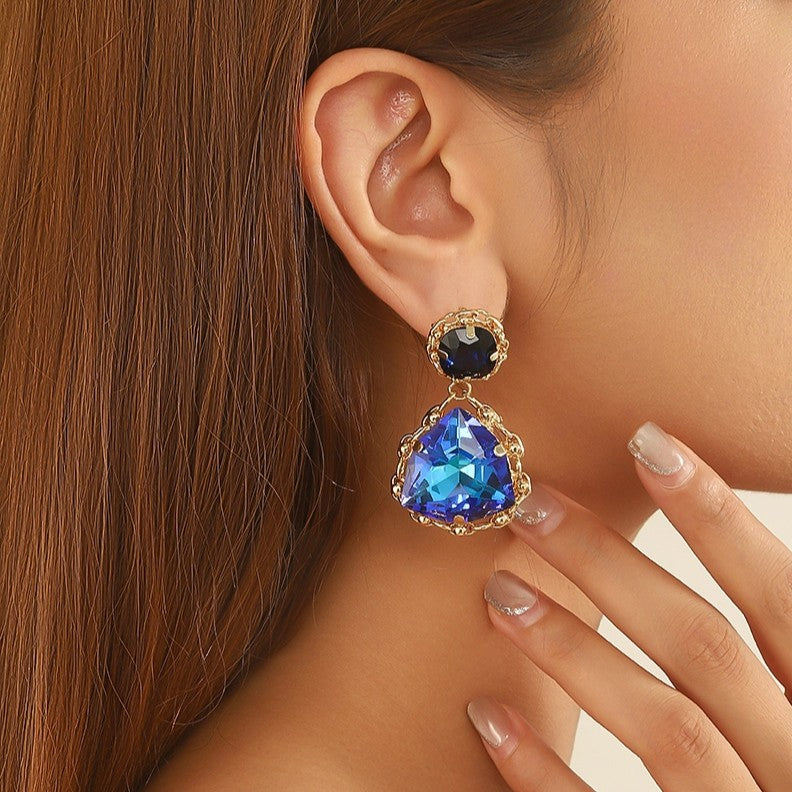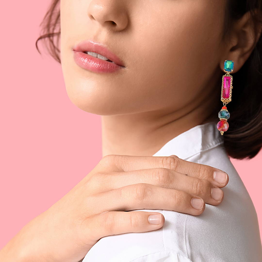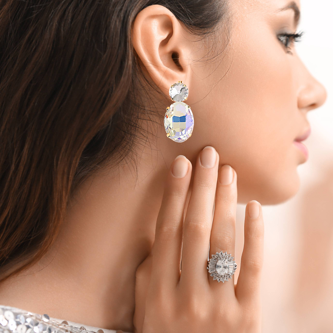 Prix régulier €20,00Boucles d'oreilles fantaisie à clous en métal doré avec strass et perles à facettes.