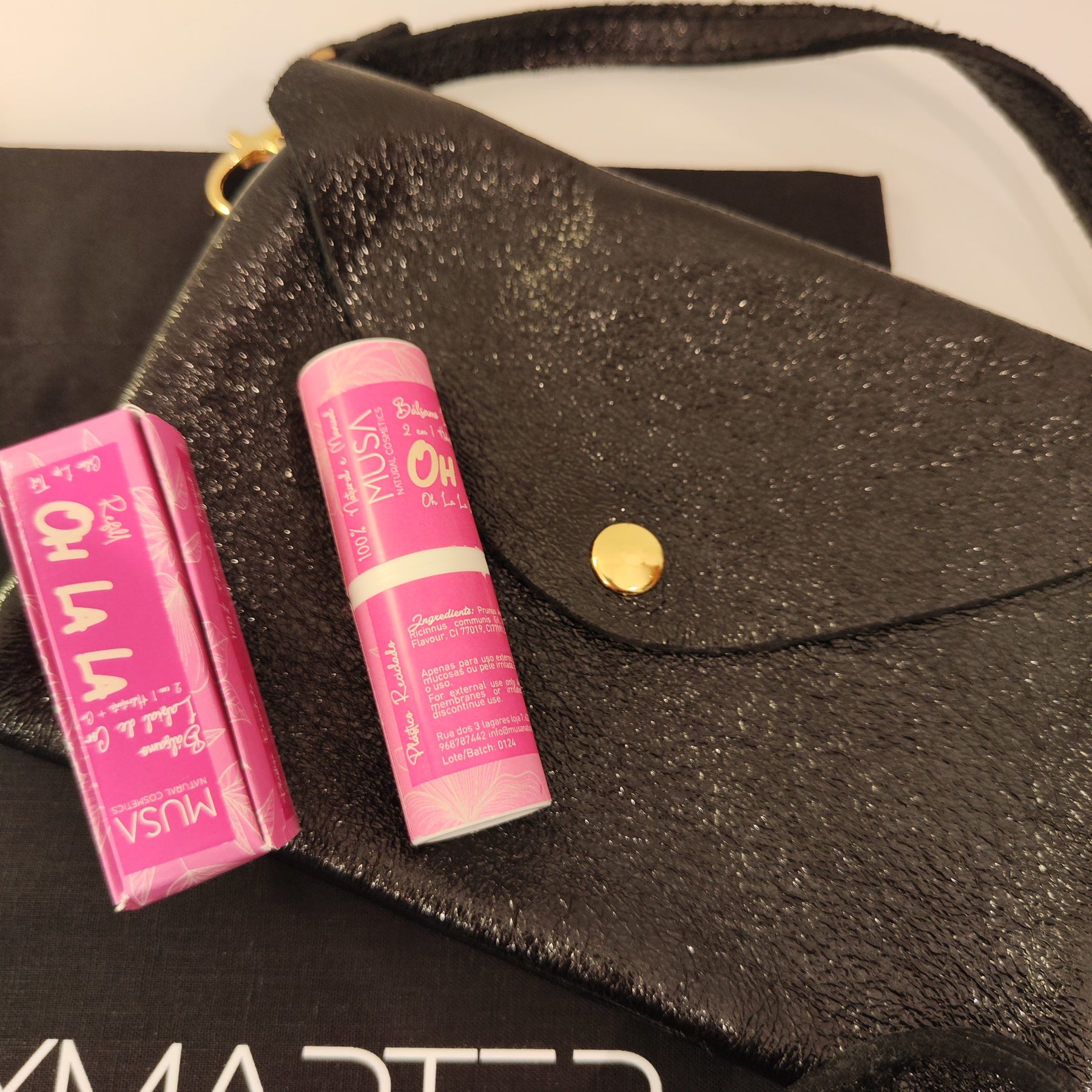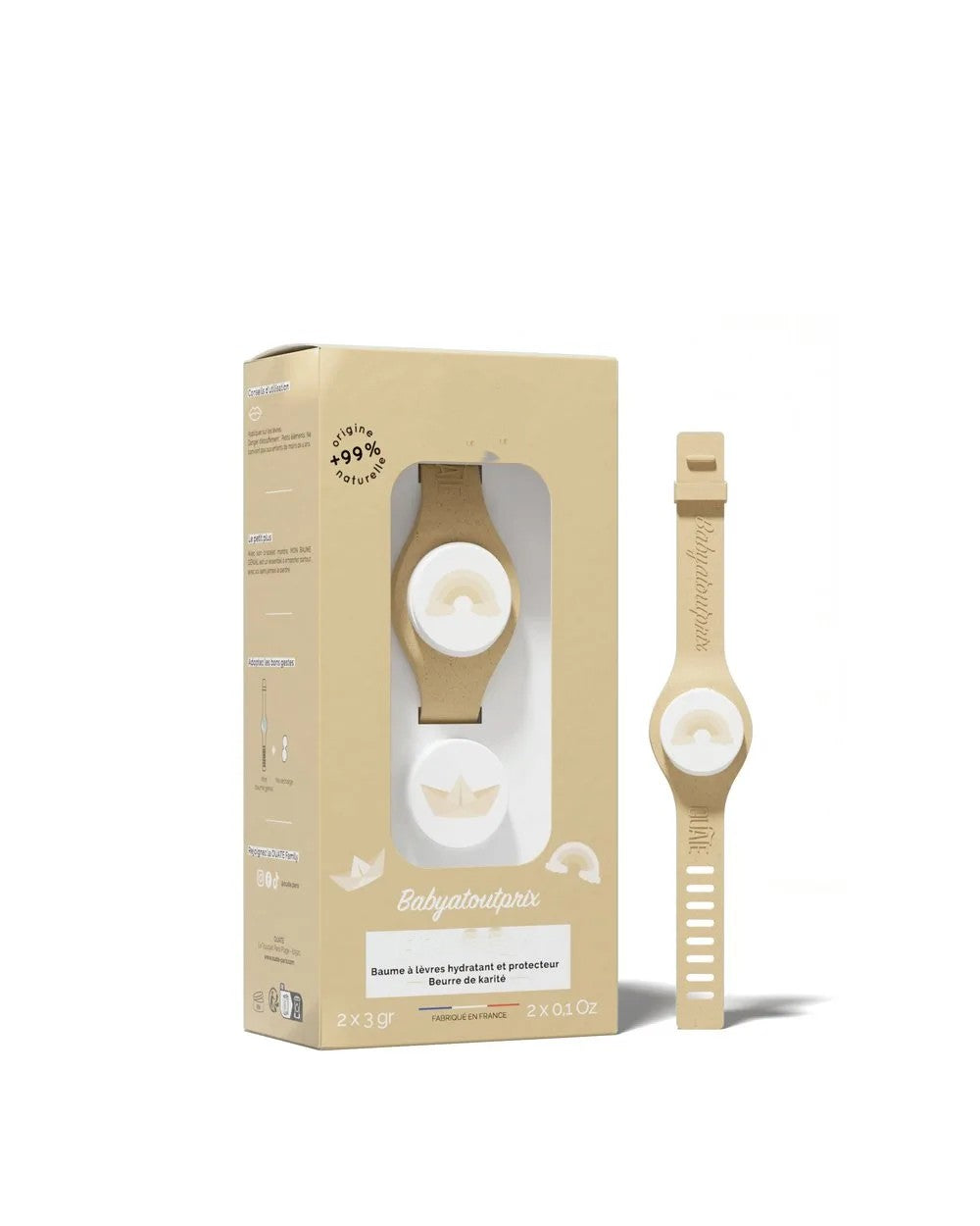 Beurre de karitĂ© bio, beurre de cacao bio, huile dâamande douce, cire de tournesol, poudre de charbon.